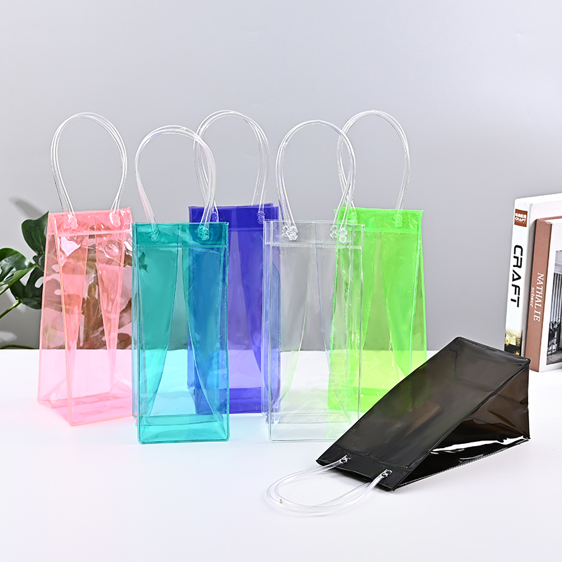 Sample Customization Cooler Chiller Drawstring Handle Bag Plastic Bottle Carrier Transparent PVC Ice Bag Folding Clear Wine Bag PVC Jewelry Bag Made in China Very well made.