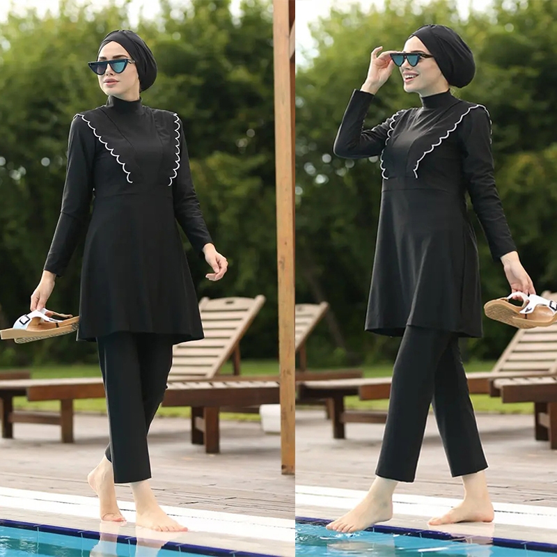 M 6XL Black Baju Renang Muslimah 3 Pieces Set Full Cover Women Muslimah Swimming Suit Swimwear Plus Size Navy Blue Shopee Malaysia Very well made.