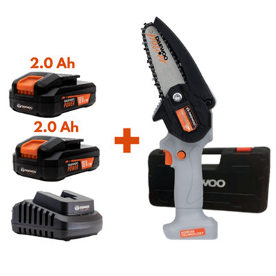 DAEWOO U FORCE 18V Cordless Handheld Mini Chainsaw 10cm with Hard Case 2 x 2.0Ah Battery Charger Very well made.