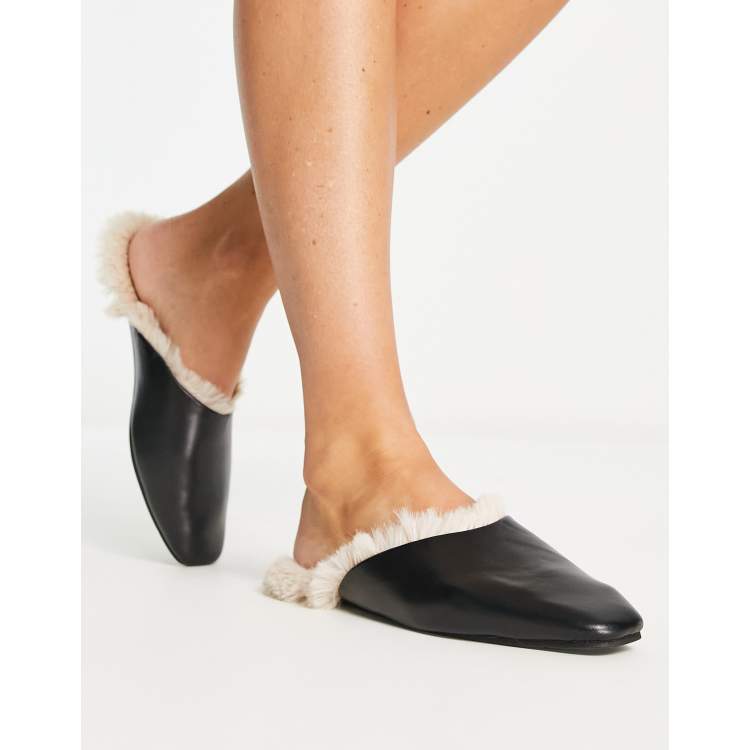 mules femme a talon plat et bandeau imitation fourrure noir Very well made.