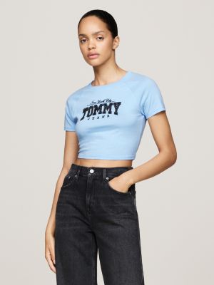 Glitter Logo Slim Crop Top Blue Tommy Hilfiger Very well made.