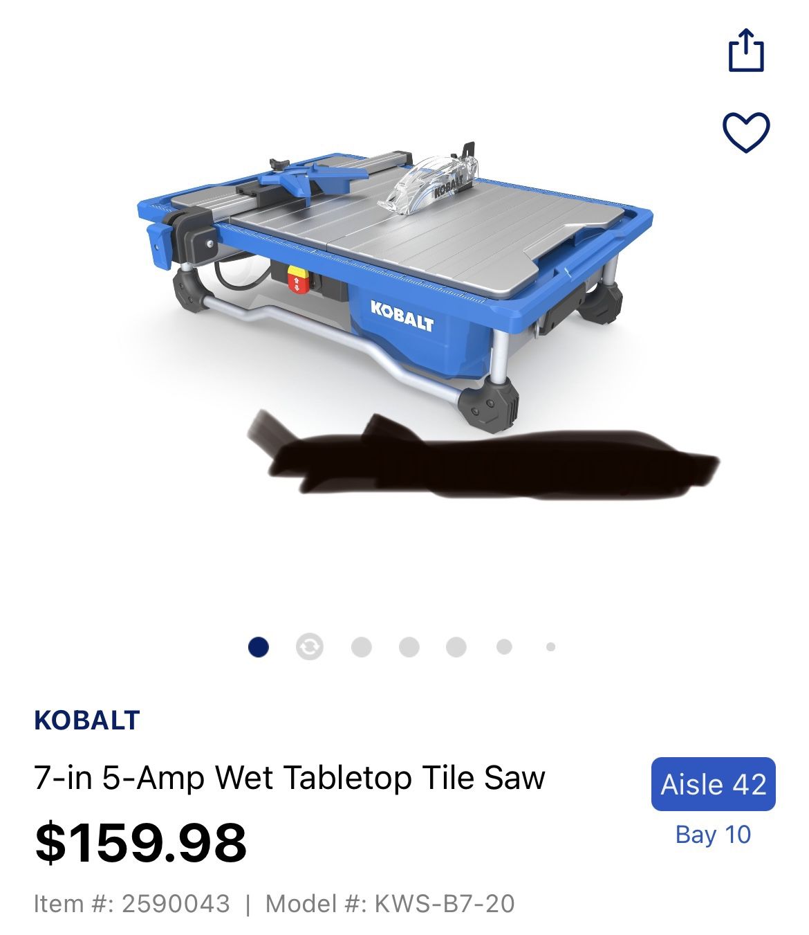 Kobalt 7 in 5 Amp Wet Tabletop Tile Saw sodifystore Very well made.