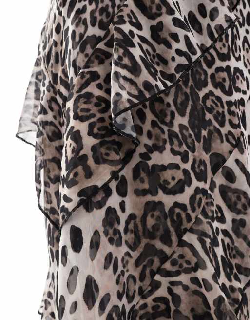 Beige Leopard Print Bubble Hem Midi Skirt River Island Very well made.
