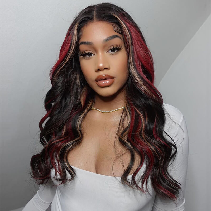 Black Hair With Red Highlights Body Wave Lace Front Wig CFW49 Xrs Beauty Hair Very well made.