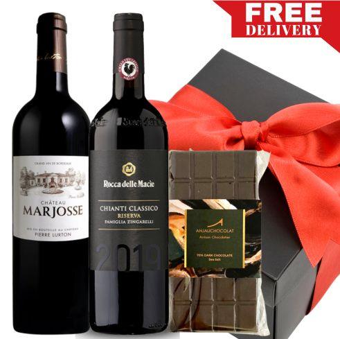 Two Premium Red Wine Gourmet Chocolate Gift Box Wrapped Pop Up Wine Very well made.