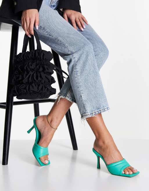 ASOS DESIGN Harvey mid heeled mule sandals in green Very well made.