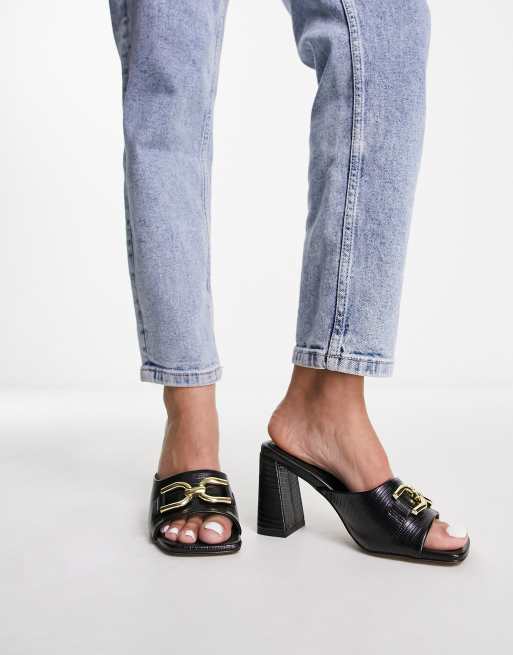 ASOS DESIGN Hush snaffle detail mid heeled mules in black Very well made.