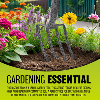Heavy Duty Garden Border Digging Fork Gardening Hand Tool Carbon Steel 4 Tooth For Planting Weed Very well made.
