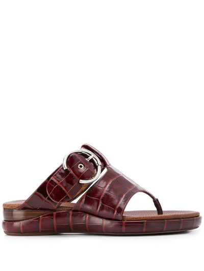 Chlo Crocodile embossed Asymmetric Leather Sandals In Brown Very well made.
