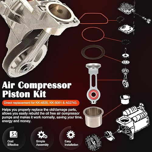 KK 4835 Compressor Piston Kit Connecting Rod Replacement Kit Perfectly Fits for Sears Craftsman Devildiss Dewalt Porter Cable Oil Free Air Compressor Pump Comparable to KK 4835 KK 5081 A02743 in Saudi... Very well made.
