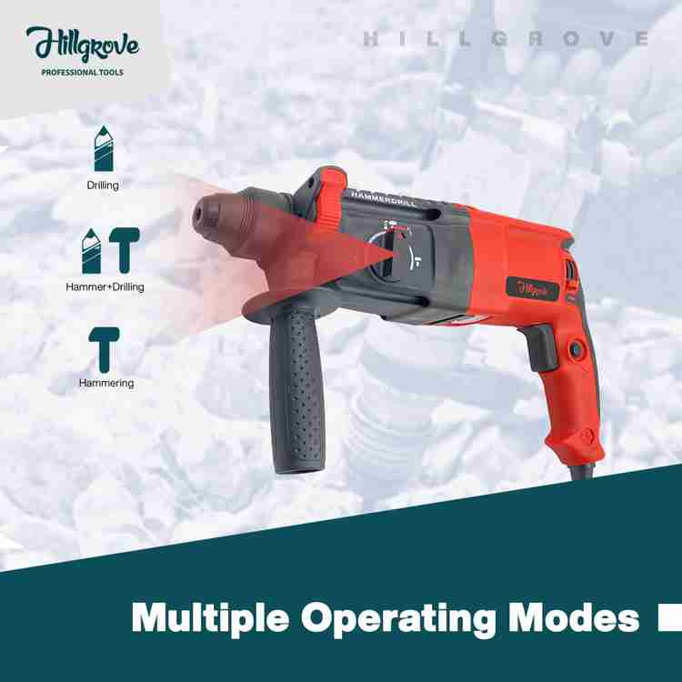 Hillgrove 100 Copper Winding H26H7 3 Modes Multi Purpose Rotary Hammer Drilling Machine H26H7 All Purpose 26mm Hammer Impact Drill Machine Forward Reverse Rotaion with 5 Bits for Making Holes in Metal... Very well made.