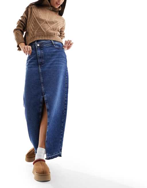 River Island asymmetric waist denim maxi skirt in blue Very well made.