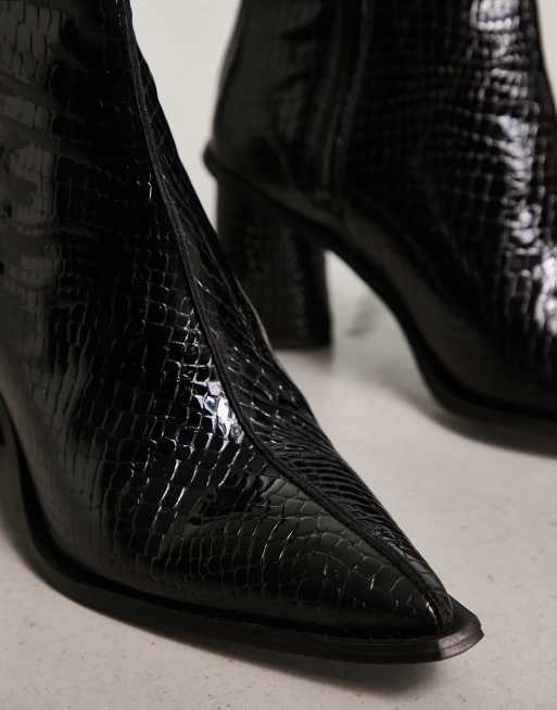 ASOS DESIGN heeled chelsea boots in black patent faux croc ASOS Very well made.