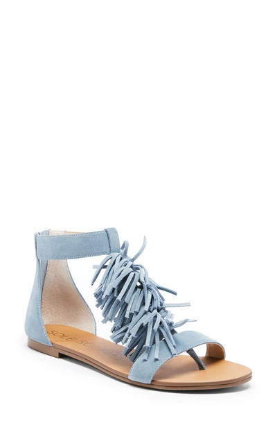 Koa Fringed T strap Sandal In Vista Blue Very well made.