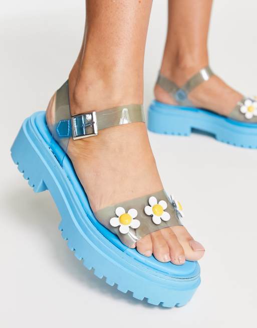 Daisy Street Exclusive flat sandals with daisies in blue vinyl Very well made.