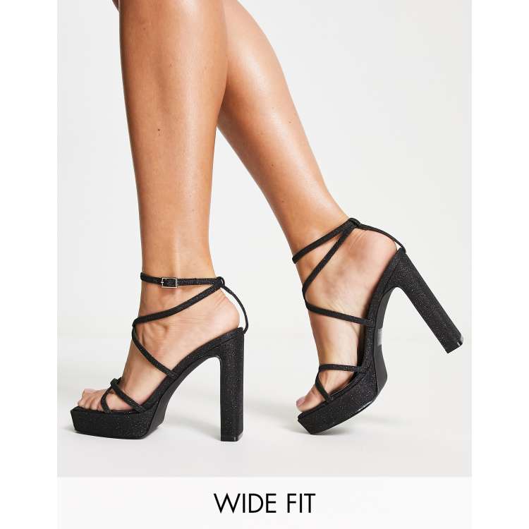 Topshop Wide Fit Spencer strippy platform sandals in black glitter Very well made.