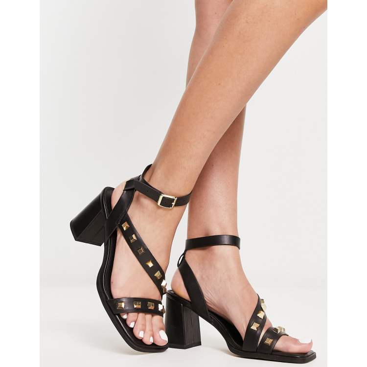 ASOS DESIGN Haiti studded blocked heeled sandals in black Very well made.