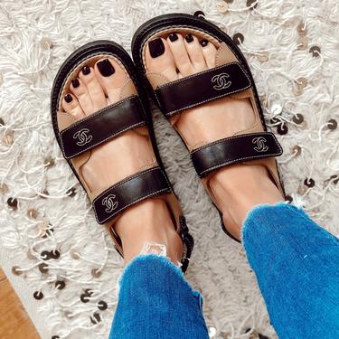 Vintage CHANEL CC Monogram Logos DAD Birkenstock Platform Sandals Very well made.