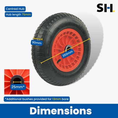 350mm 14 Inch Pneumatic Wheelbarrow Wheel with 25mm 13mm Bore 3.50 8 Replacement Tyre Very well made.