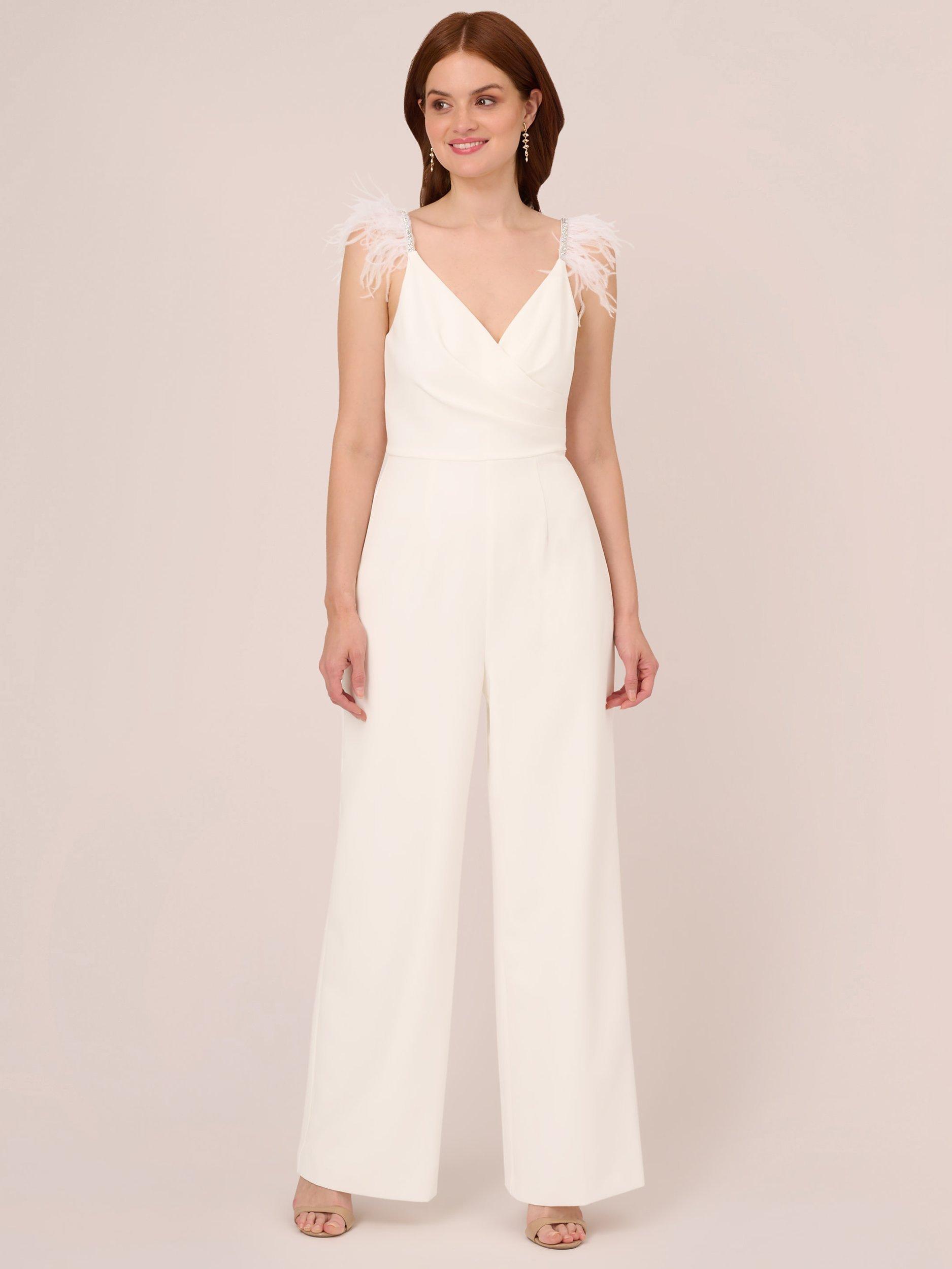 Adrianna Papell Bead Crepe Jumpsuit Ivory Very well made.