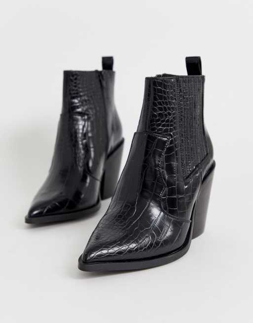 ASOS DESIGN Wide Fit Elliot western boots in black croc Very well made.