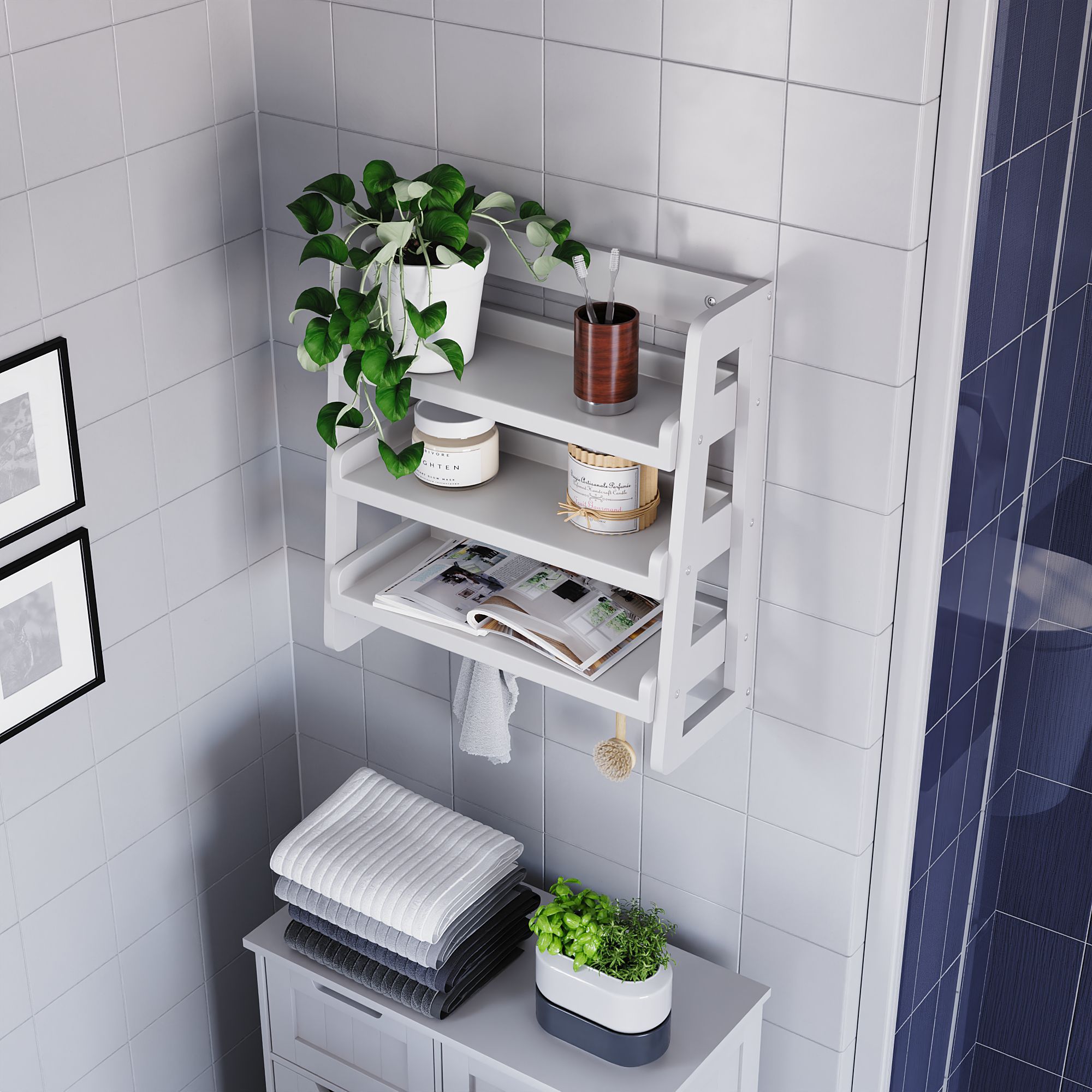 Hayle Matt White Wood Rectangular Wall mounted Bathroom Shelf D 20cm H 53cm L 20cm Very well made.