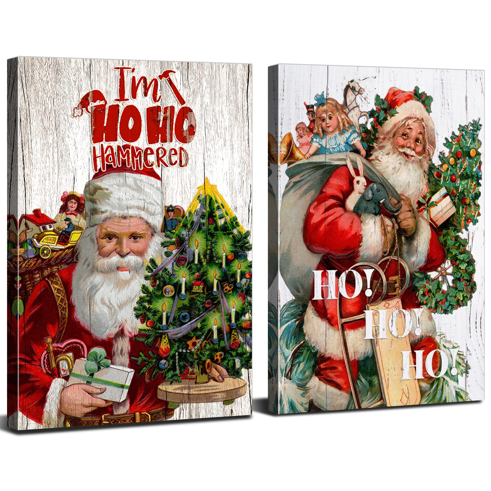 Christmas Wall Art for Living Room Bedroom Home Decorations Red Santa Claus Carrying Gifts Wall Decor Funny Merry Christmas Sayings Canvas Prints 12x16 2Pcs Rustic Artwork Christmas Tree Poster Amazon... Very well made.
