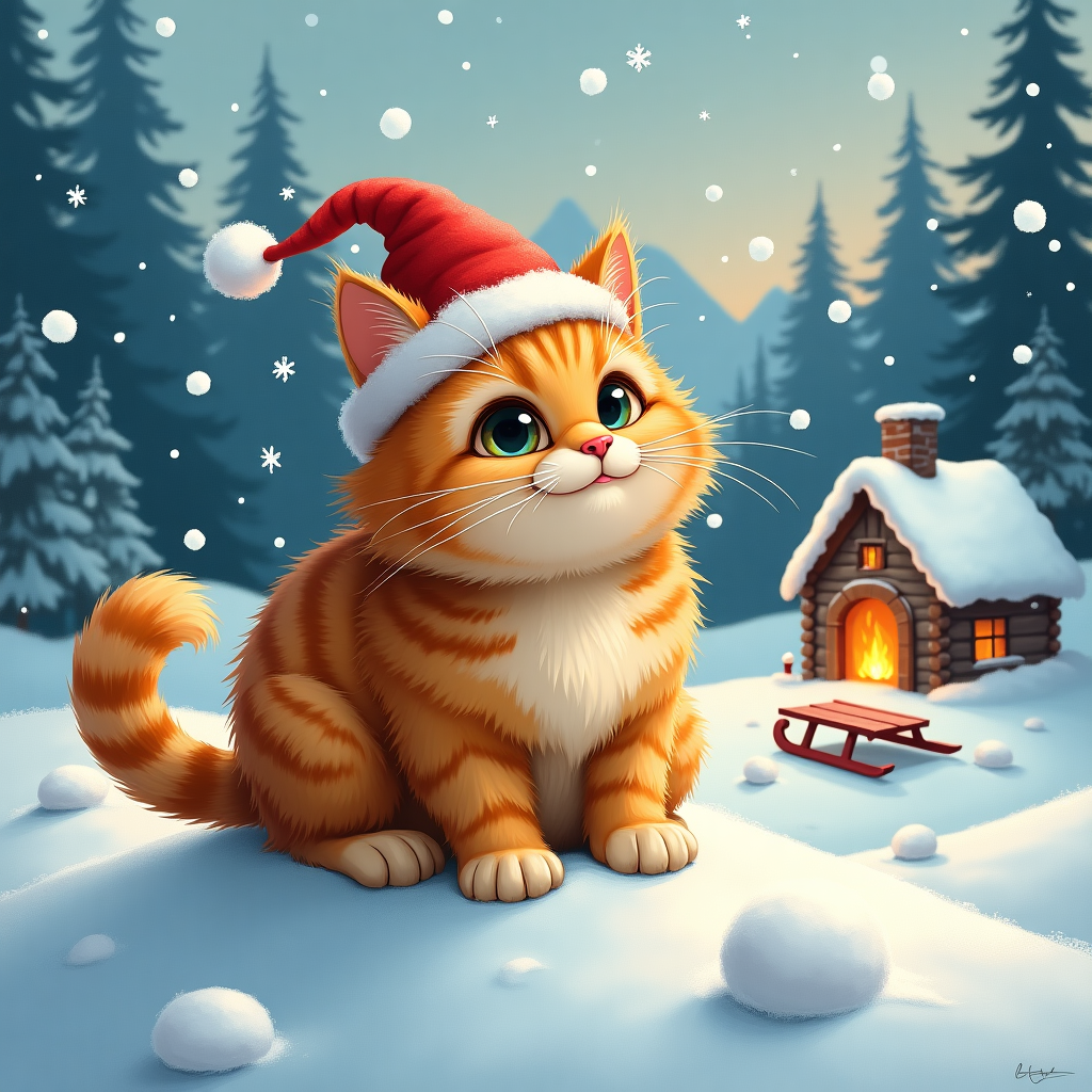 2 Christmas AI Generated Card cat wearing santa hat in the snow while its snowing a5207 Very well made.