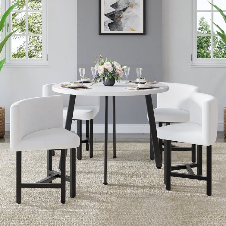 1000mm Round Wooden White Small Nesting Dining Table Set for 4 White Upholstered Chairs Homary UK Very well made.