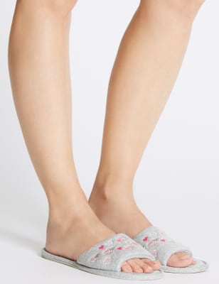 Heart Embroidered Open Toe Mule Slippers Very well made.