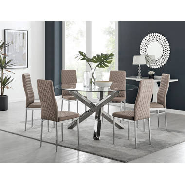 Vogo Modern Design Chrome and Glass Dining Table Set with 6 Quilted Faux Leather Dining Chairs Very well made.