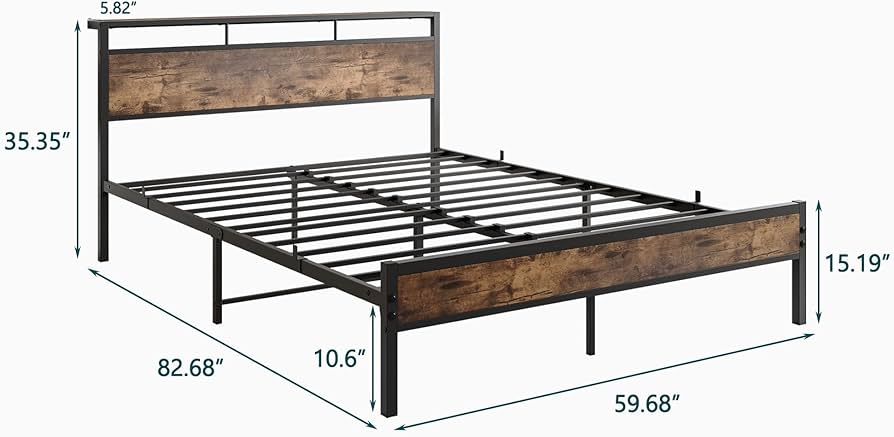 FOUBAM Queen Size Bed Frame Storage Headboard with USB and TypeC Charging Station Metal Platform Bed with Strong Supports Sturdy and Noise Free No Box Spring Needed Easy Assembly Vintage Brown Amazon.... Very well made.