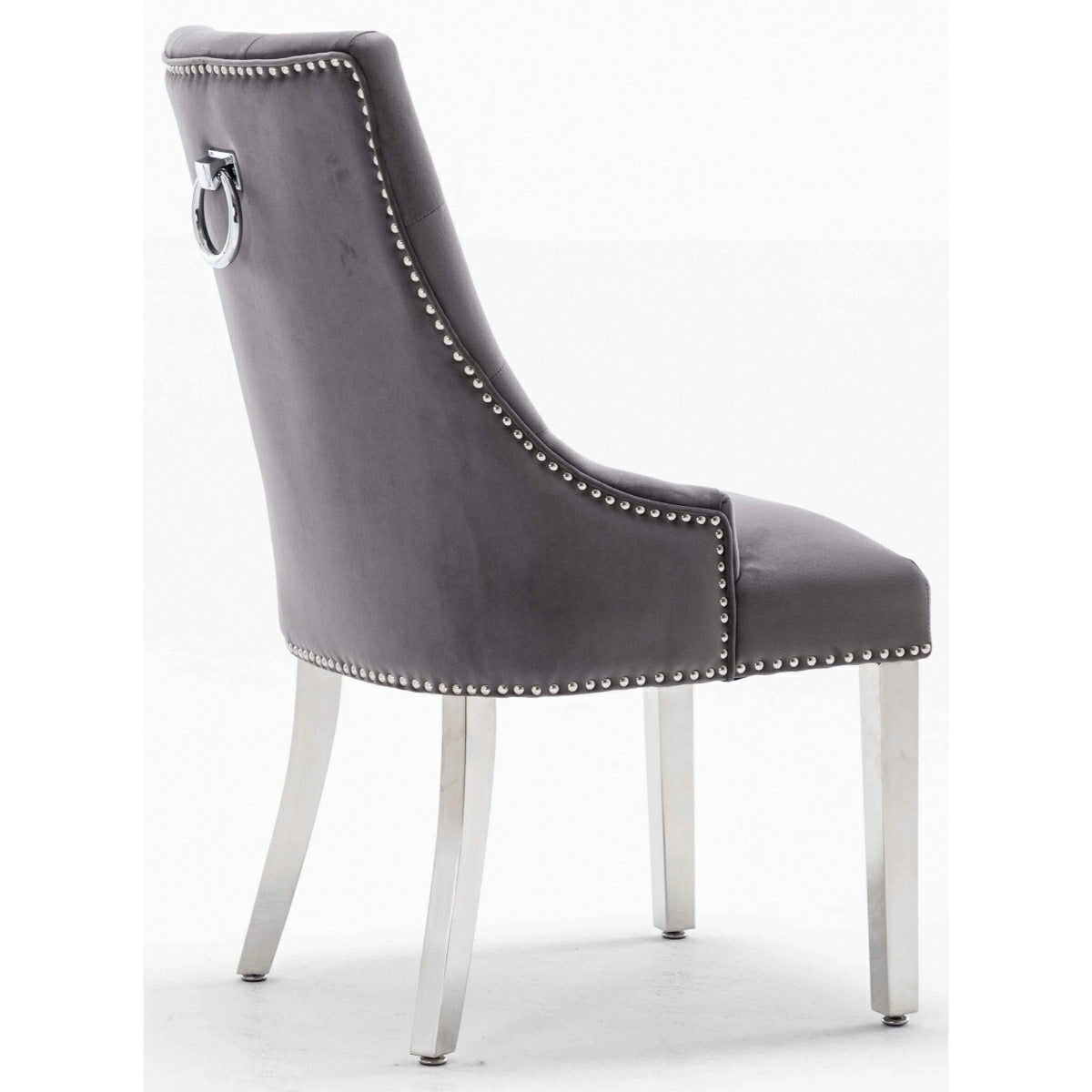 Knightsbridge Dark Grey French Velvet Knocker Back Dining Chair With Chrome Legs Very well made.