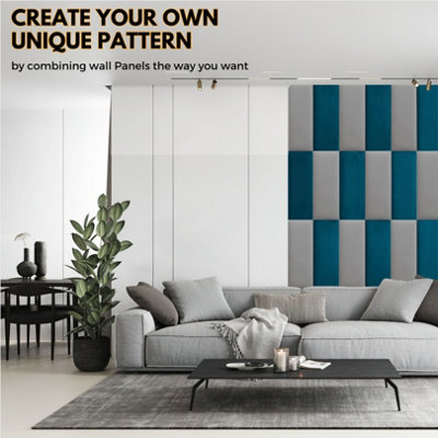 Set of 4 Padded Wall Panels With Adhesive Included 80x30cm Dark Grey Velvet upholstered wall panels Very well made.