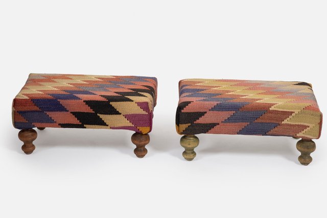 Small Turkish Kilim Ottomans with Wooden Legs Set of 2 for sale at Pamono Very well made.