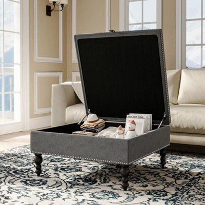 Large Grey Linen Upholstered Storage Ottoman Bench Footstool with Wood Legs W 850 x D 850 Very well made.