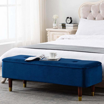 Katrina Modern Velvet Ottman Storage Bench Bedroom Livingroom Seating Footstool Blue Very well made.