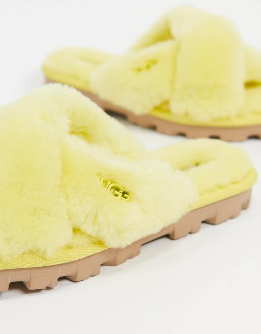 UGG Fuzzette cross strap fluffy slippers in yellow Very well made.