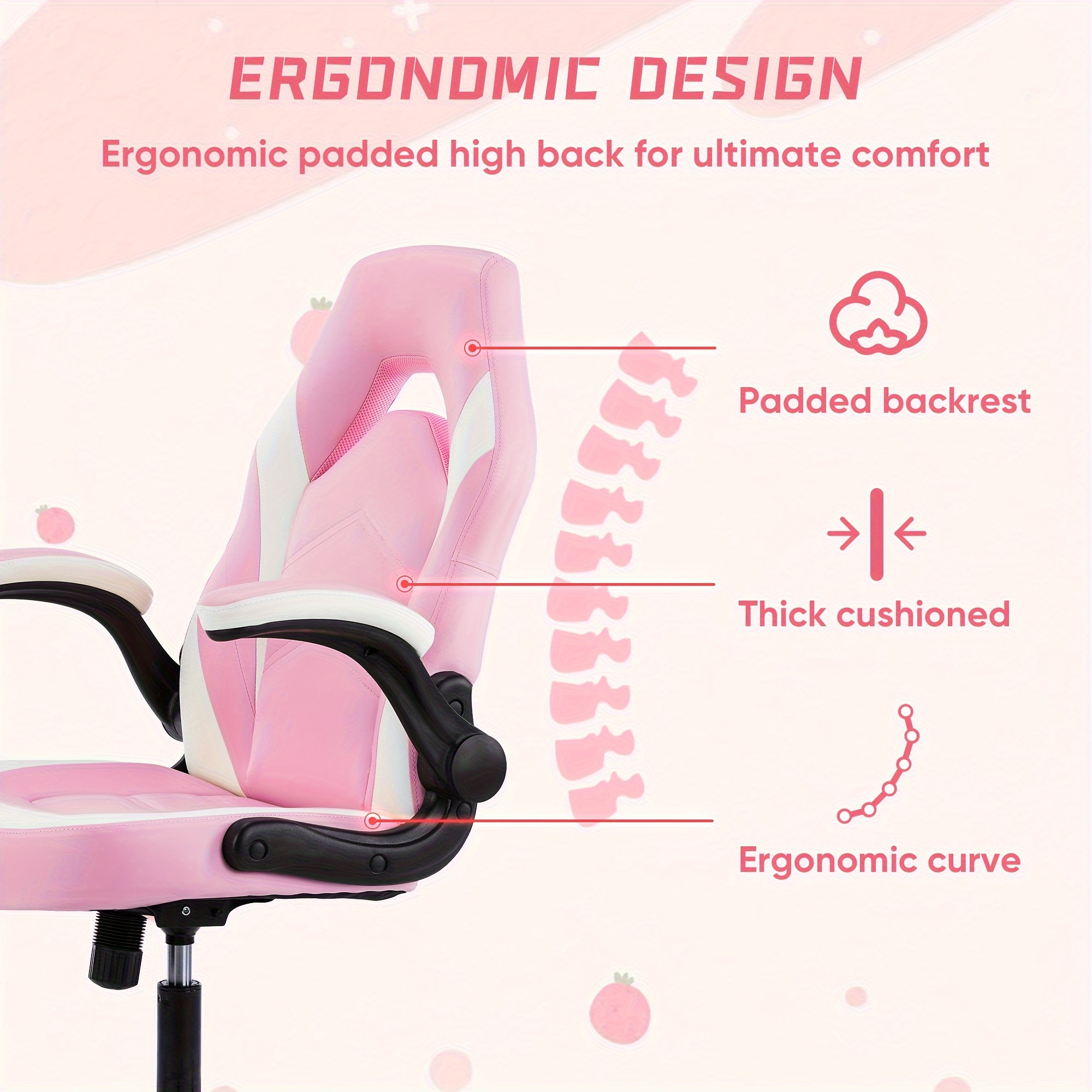Computer Gaming Chair Office Desk PU Leather Chair with Padded High up Armrests Swivel Task Chair Adjustable Height pink Very well made.