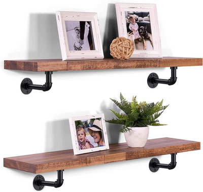 Black Malleable Cast Iron Pipe Fittings Shower Shelf Hanging with Wooden Modern Shelves Very well made.