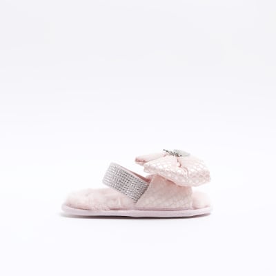 River Island Slippers Size 1 Feet Pink Faux Fur Lining Slip On Very well made.