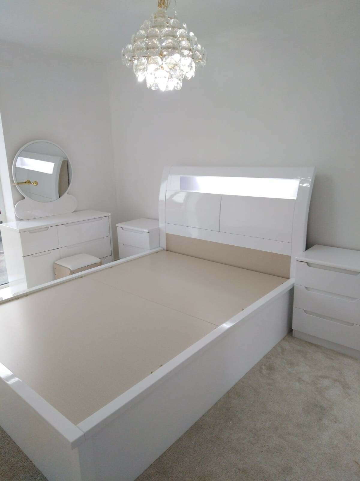 WHITE HIGH GLOSS OTTOMAN STORAGE LED BED WITH 2 USB PORTS FREE DEL IN LONDON Very well made.
