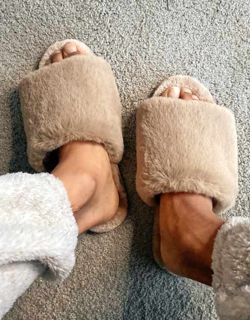 ASOS DESIGN mule slipper in stone faux fur ASOS Very well made.