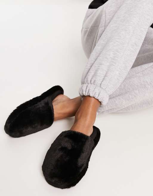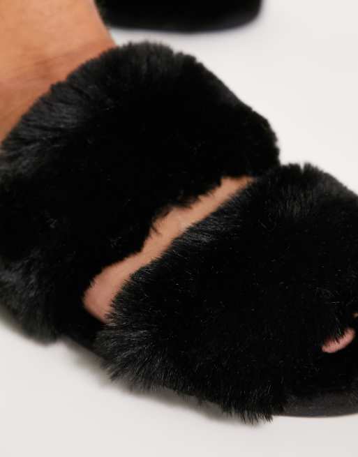ASOS DESIGN two strap faux fur slippers in black ASOS Very well made.