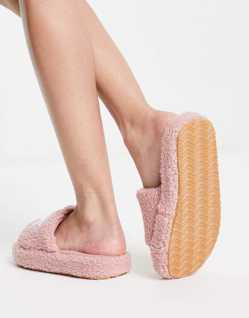 ASOS DESIGN Zahra chunky floral slider slippers in borg ASOS Very well made.