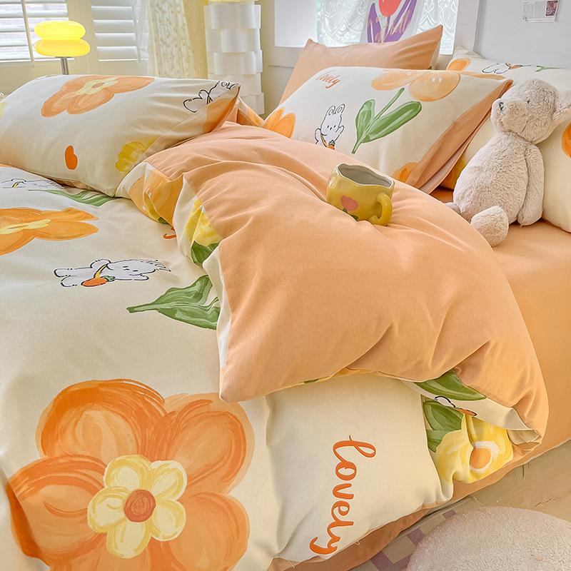 Cheap Thickened Sanded Fabric Four Piece Bedding Set Autumn and Winter Bed Sheet Quilt Cover Fitted Sheet Cotton Three Piece Set Joom Very well made.