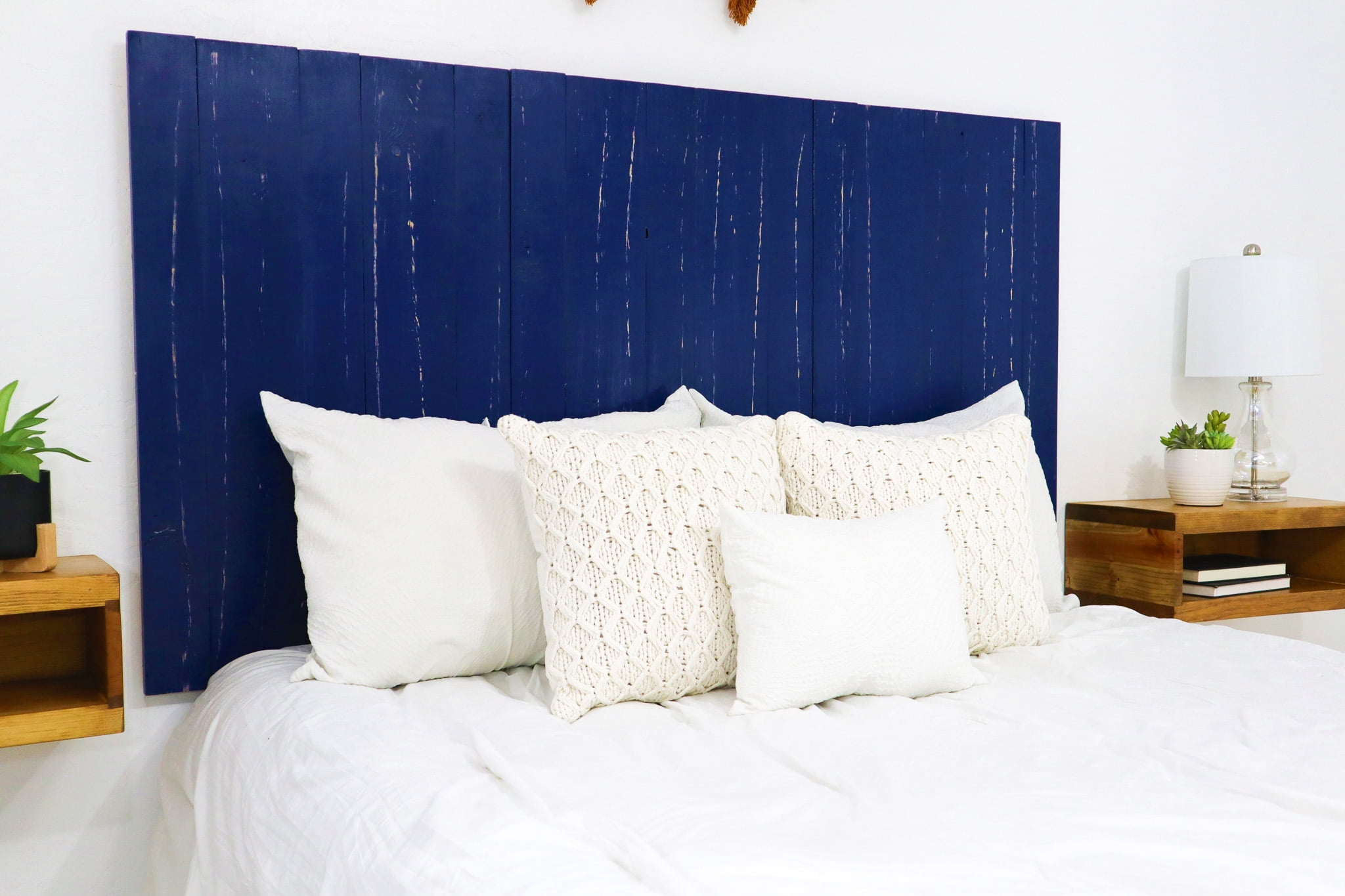Barn Walls Navy Blue Headboard Coastal Design Weathered Solid Wood Headboard Floating Panels Wall Mount Adjustable Height Easy Assembly Queen Size Walmart Very well made.