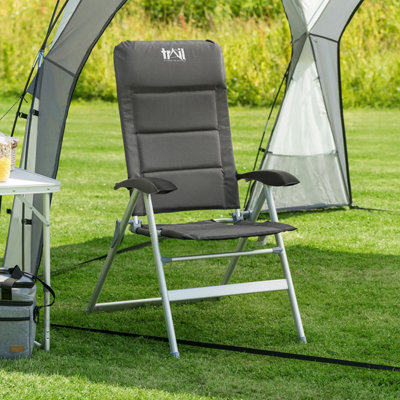 Reclining Camping Chair Folding Aluminium Garden Recliner Sponge Padded Trail Grey Very well made.