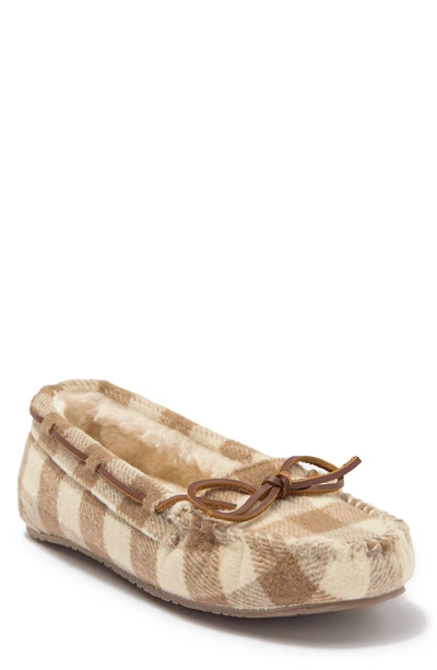 Minnetonka Jr Trapper Plaid Print Faux Shearling Lined Moccasin In Very well made.