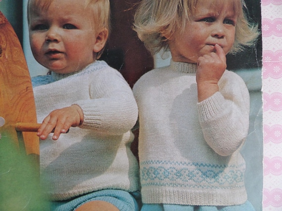 Knitting Pattern Baby Children Girl Boy Twins Jumper 4 Ply 20 22 Vintage Very well made.